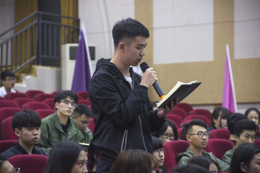(学生会办公室韦越就“如何更好整合学生组织之间的资源”进行阐述)