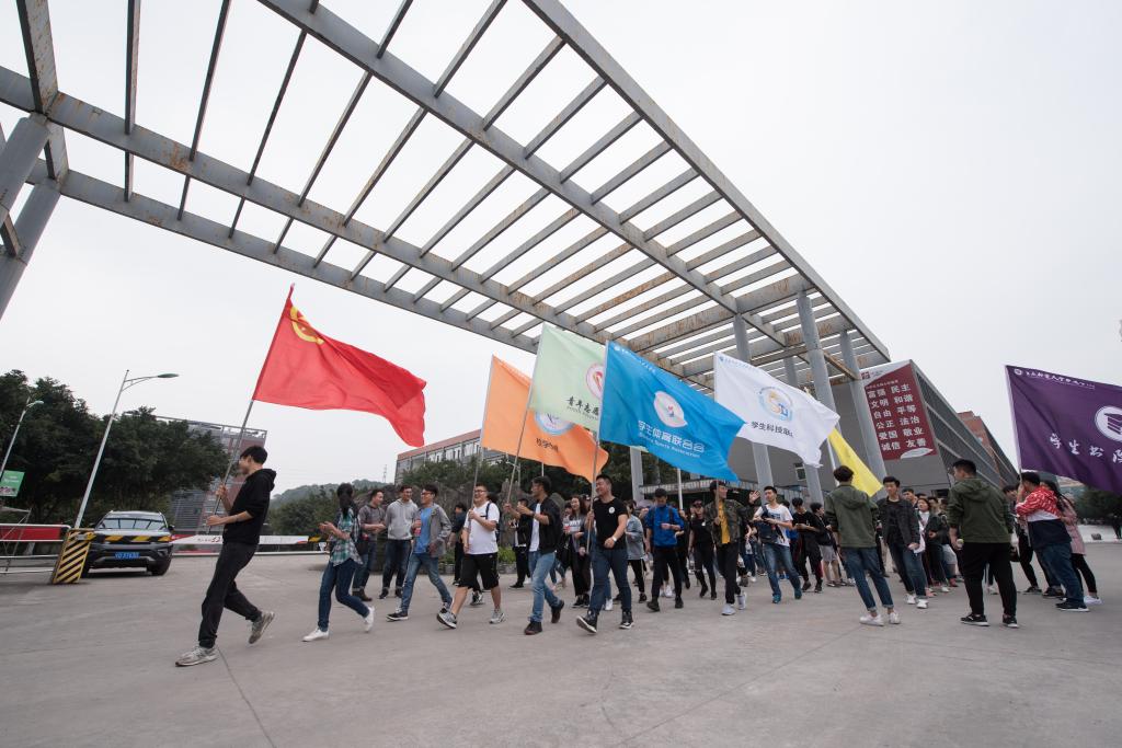 各组织的成员一起远足,在路上,主席们举着旗带领我们前行,虽然路途遥远但是一路上有许多美丽的风景,在学生工作中也一样如此,主席们为我们斩断荆棘,在前方引领。到达目的地时会回想路途的坎坷,自由自在的享受最终的成果。一次远足,收获了路途之累,同时也收获了美丽的风景与友谊。