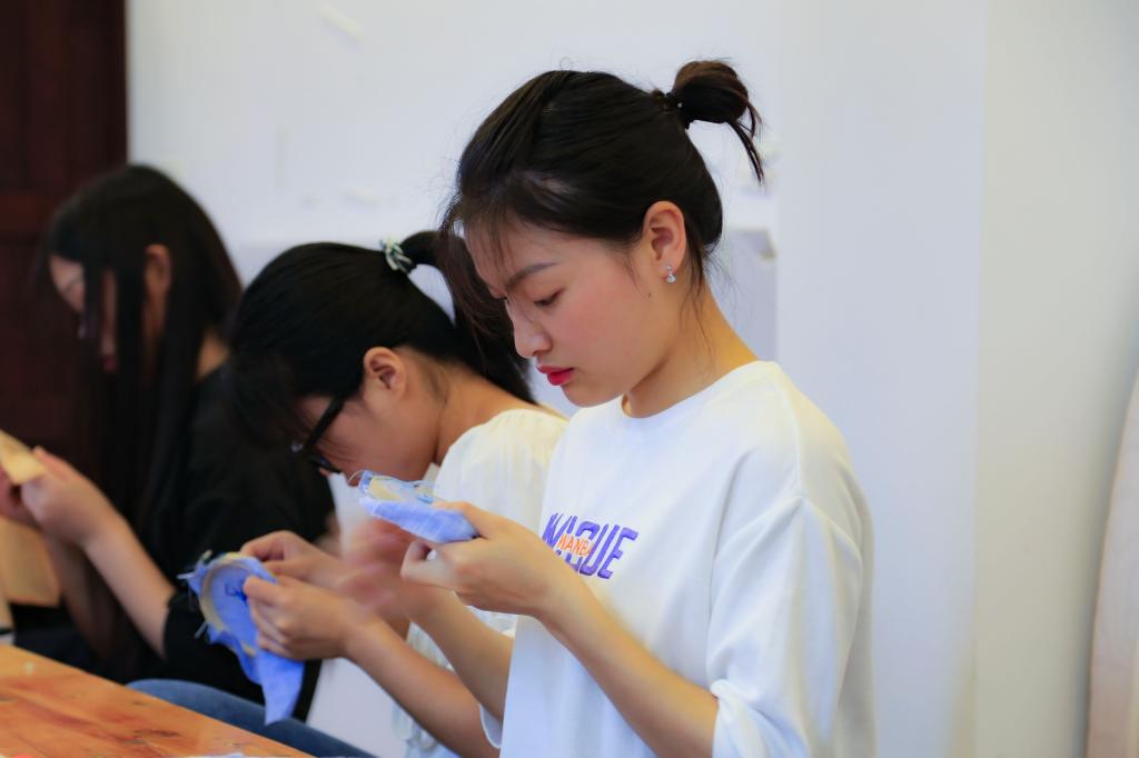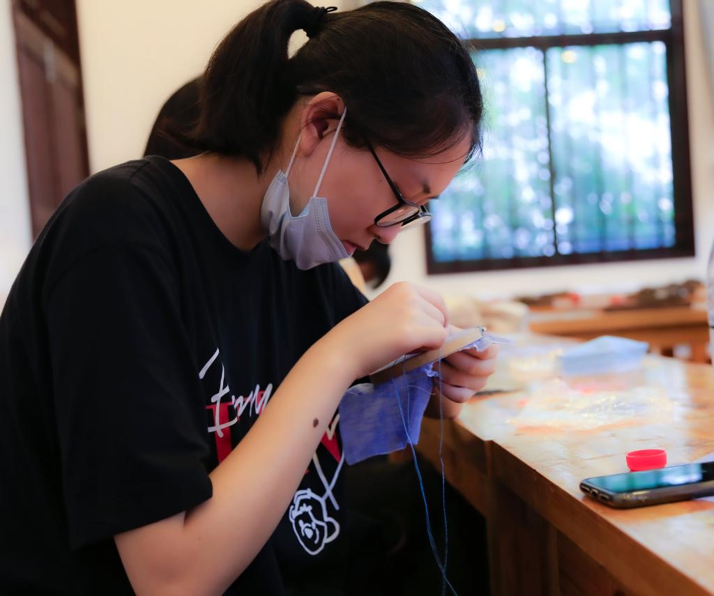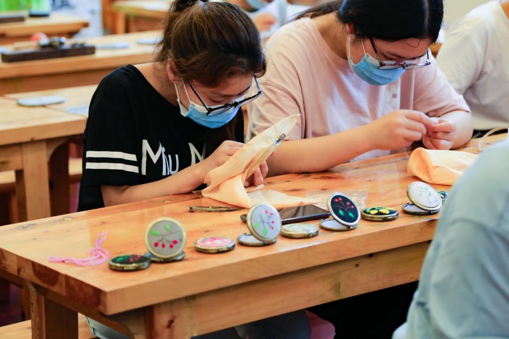 时间如同流沙一样,悄无声息的从指缝间流走,转眼2个小时时间已过,同学们戴着口罩,眼神坚定的学习刺绣的画面,让我们看到了中国传统民间艺术的可期待的未来。同学们手中一针一线传承的不仅仅是一门手工技艺,更是对中华传统文化的热爱与执著坚守。