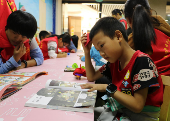 下午两点,直播继续进行,有了上午的直播经验,下午的活动显得更加得心应手。我们带着李国旭小朋友来到了缤果城少儿公益图书馆。这里是专属小朋友的天堂。书籍开阔小朋友的眼界,手工玩具锻炼他们的动手能力。一进入图书馆,李国旭就被七巧板给吸引了,拿着七巧板一直放不下,势必要将它重新拼好,虽然我们在旁边帮助着他,但他更喜欢自己独立思考,这让我看到了他的又一个优点。玩耍之后,我们问他有没有想对外公外婆说的话,他点点头,然后拿起旁边的彩纸就开始写,看着他认真的样子,我不禁反思起自己,自古以来,中国人都讲究意不直叙,情不表露,崇尚于一种浪漫,但也让我们的内心变得不再积极,对思想的不愿轻易表达,对表达情感的怯懦。也许越长大有些话就越不容易说出口,但用笔传递感情不失为一种好方法。大声说出自己对亲人的爱,可能会比我们把这个深藏心底好得多。