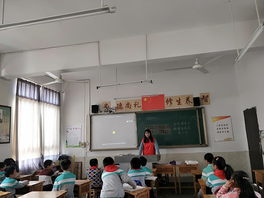 黑板上白色粉笔潇洒挥舞,一字一句深深印在同学的脑海。在充满求知渴望的科技课堂,放映着科普视频,同学们尽情地漫游在知识海洋。志愿者期待在这片自己耕耘的课堂上撒下“种子”和培育“幼苗”,为接下来的课程增添了一份期待。