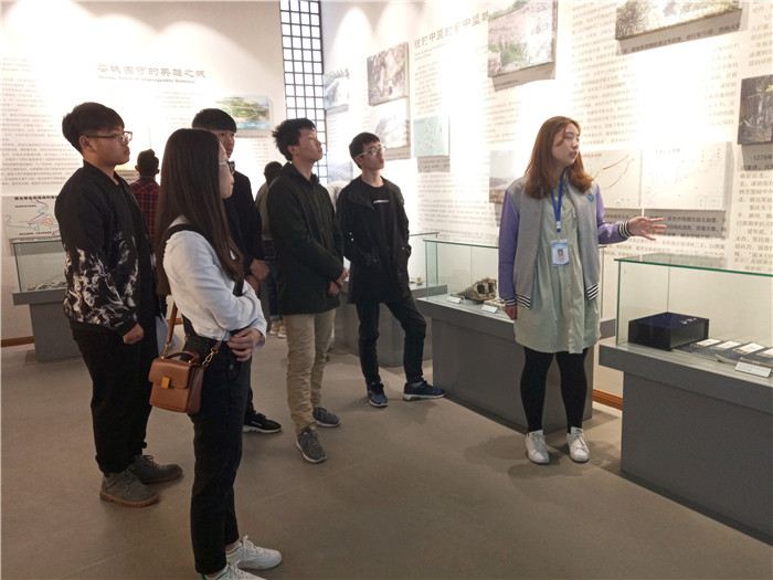 在听完讲解员对于钓鱼城之战整体框架的讲解之后,同学们根据自己的喜好,选择不同的历史板块自行研读。部分同学则继续跟随讲解员听他对每个板块的仔细讲解。在生动的讲解过程中,眼前仿佛浮现出先辈们誓死捍卫钓鱼城的艰难岁月,耳边响起了那渠江河畔的铮铮铁马声,当年一切往事仿佛是亲身经历,仍刻骨铭心。
