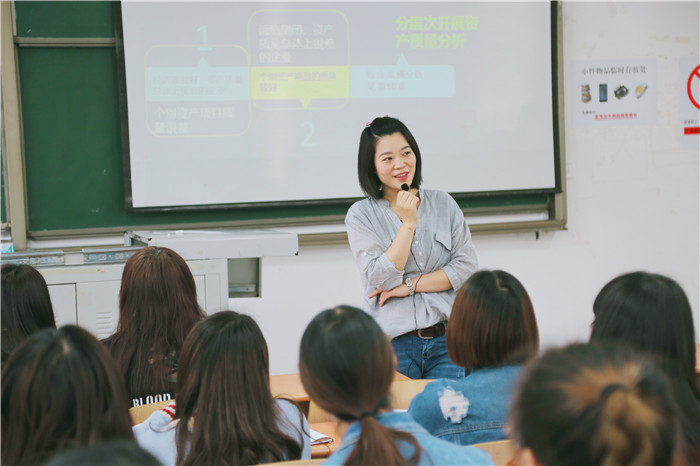 站在讲台,从容不迫,用她那双会说话的眼睛望着学生们。每当讲到难以理解的知识点,总是用恰到好处的例子加以阐释,乏味的专业课,总是会因为她的幽默让课堂流露出轻松的氛围。