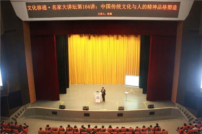 讲座从读经典、传思想、铸精神三方面展开。陈教授讲到,作为中国人应该了解文化载体——经典著作;应该知道文化核心——思想根脉;应该铸就文化灵魂——民族精神。陈教授先从“立人先立心”、“授鱼亦授渔”、“人文就在呼吸间”三个层面,旁征博引、深入浅出地为师生们阐释了传统文化的内涵,揭示了精神品格塑造的重要性。