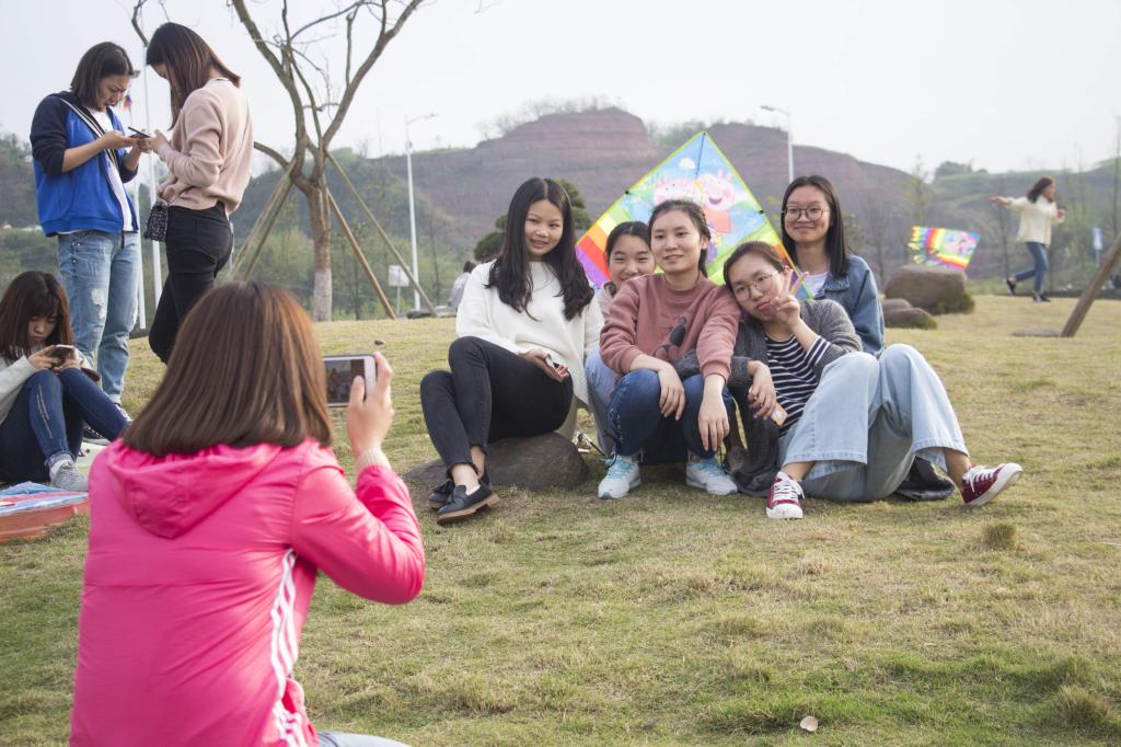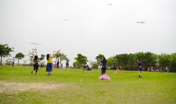 重庆的三月已是暖意融融,阳光的照耀也格外舒服。于是结束绘画后,我们决定采用徒步的方式向此次的目的地“赵家渡水生态公园”前进,虽然这次活动的女生居多,但赶着春的脚步,一路上唱着歌、聊着天,半小时的路途在同学们的欢声笑语中很快度过,转眼间我们已经到达公园,你看!同学们已经跃跃欲试,迫不及待的打开风筝,接上细线,卖力的在草坪奔跑,天空作美,小伙伴们的风筝在努力之下也纷纷飞上了蓝天。风和日丽间,奔跑的伙伴,以及飞翔的愿望风筝共同构成了这个春日里最靓丽的风景线。看着同学们的笑脸,我也默默的许下心愿:“愿这个春日,我们的青春常驻于此。”