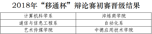 评委老师的精彩点评,既说出精彩之处也指出了选手们的不足,同时也教会选手们很多场上经验。观众们也对他们印象中的辩论赛有了翻天覆地般的改观。伴随着主席宣布的结果,为期三天的2018年“移通杯”辩论赛初赛就落下了帷幕,望淘汰的队伍不要气馁,也相信晋级的通信与信息工程系、自动化系、计算机科学系、淬炼商学院、中德学院、艺术传媒学院能够在复赛时以舌为剑,以缜密细致的思路,与对手辩出胜负。