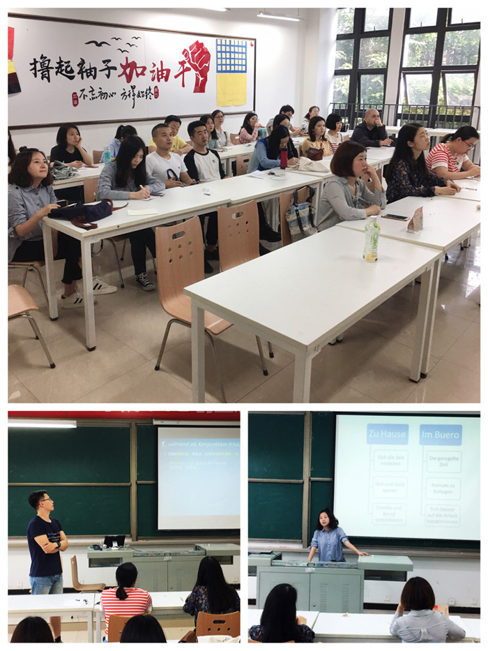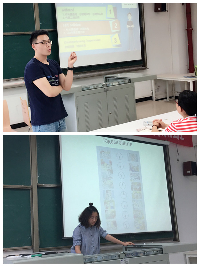 各位参赛老师通过悉心准备的授课内容,精心设计教学环节,以及丰富多彩的教学方法,展现了各具特色的教学方式。他们有效地利用微视频、黑板板书等教学手段,充分展示了各自的优势、特色和风格,给大家呈现了一堂堂精彩纷呈的示范课,展现了中德学院德语教师的教学风采。