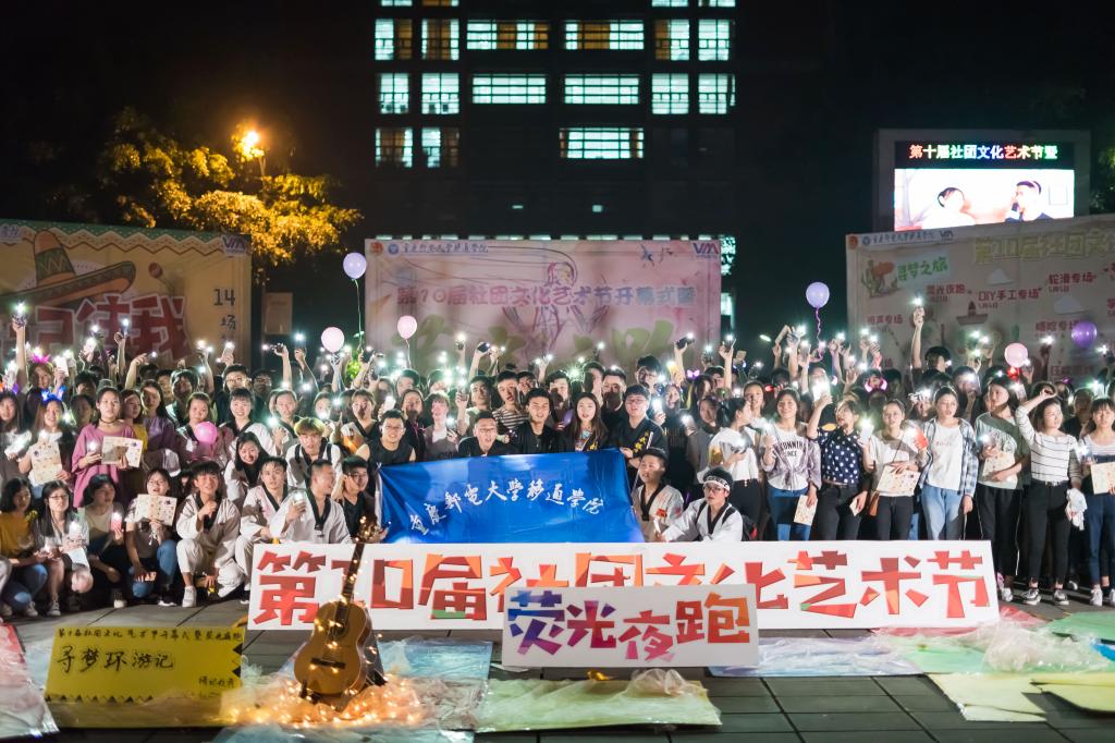 十年很短,我们拾起勇气寻梦,携着初心向前环游,在风雨洗礼中成长变强。4月27日晚,由校团委主办、学生社团联合会承办、全校121支学生社团协办的第十届社团文化艺术节开幕式暨荧光夜跑活动在教学楼广场再次起航,让我们带着不变的初心,向前奔跑,寻梦环游。