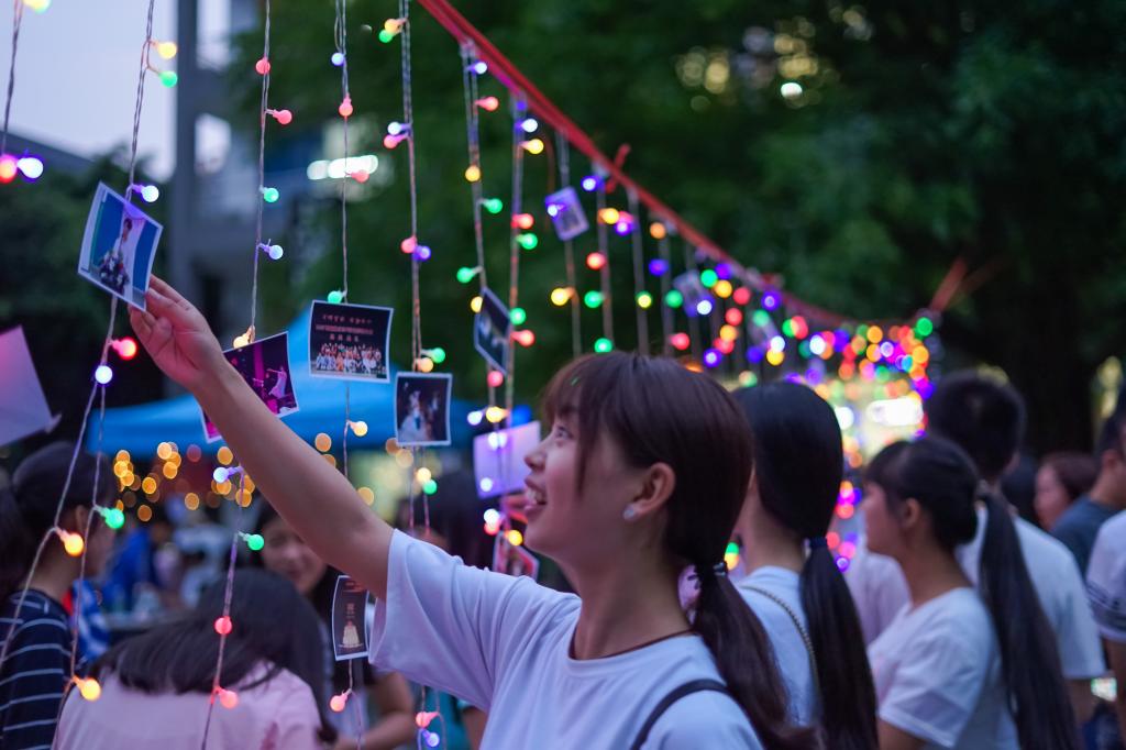 这是我们的十年,一代代社团人共同创造的十年。彩色的灯光点悬挂在教学楼的最中心,一张张照片,贴在上面,那是我们共同走过的故事。我们的十年,崭新的十年。在此刻,我们编织梦想的形状。昨日的星星点点,都变成了此时的礼物。舞台四个超大的礼物盒,装着象征着荣光与追求的吉他,就像本次主题的启发点电影《寻梦环游记》里的吉他一般,寄托着梦想与希望。而礼物盒中的气球,承载着社团文化艺术节,承载着十年,承载着未来更美好的模样。