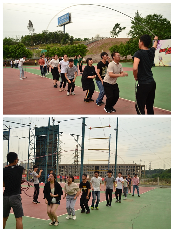 “绳”采飞扬游戏中,学员们在大绳的飞舞中跳跃,在燥热的天气下一次次尝试,挥洒着汗水,展示出作为学生干部的一种坚持。