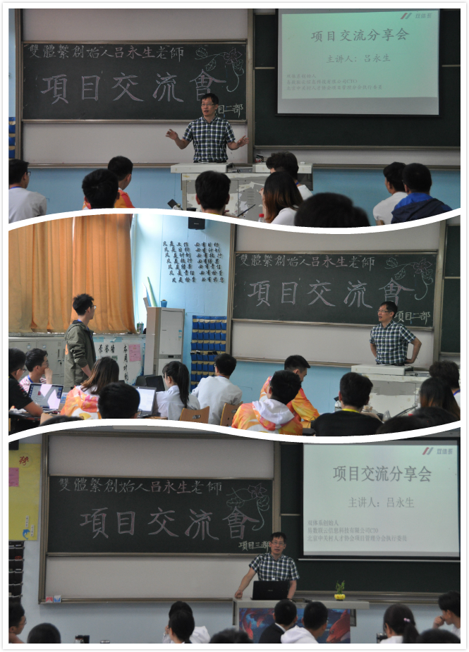 2018年4月27日至4月28日,易数联云信息科技有限公司CTO、北京中关村人才协会项目管理分会执行委员、双体系创始人吕永生老师莅临双体系卓越人才教育基地指导教学工作。在两天时间内,吕老师分别与双体系技术、职场经理及教师,项目部第十四期学员以及开发中心第六期学员进行了交流分享,并为项目部第十四期学员带来了一场精彩的公开课。