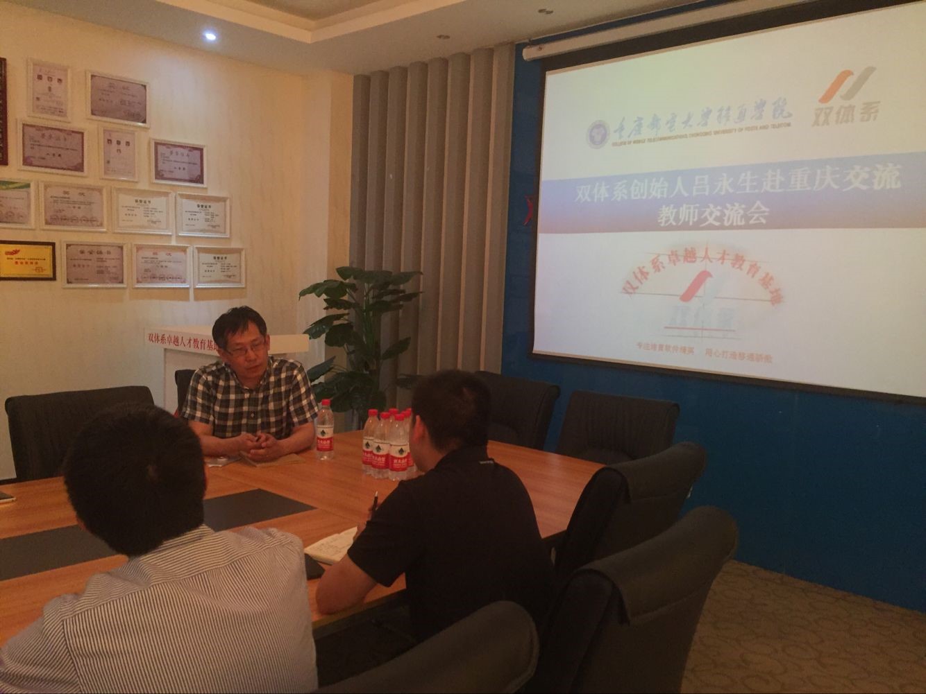 28日下午,吕老师再次和双体系主任陈仲华老师,以及重庆山西两地双体系技术/职场经理进行了深一步的探讨,就教学质量及教师培训问题,学员就业选择、学员面试、新兴技术植入等问题进行了有针对性的讨论。