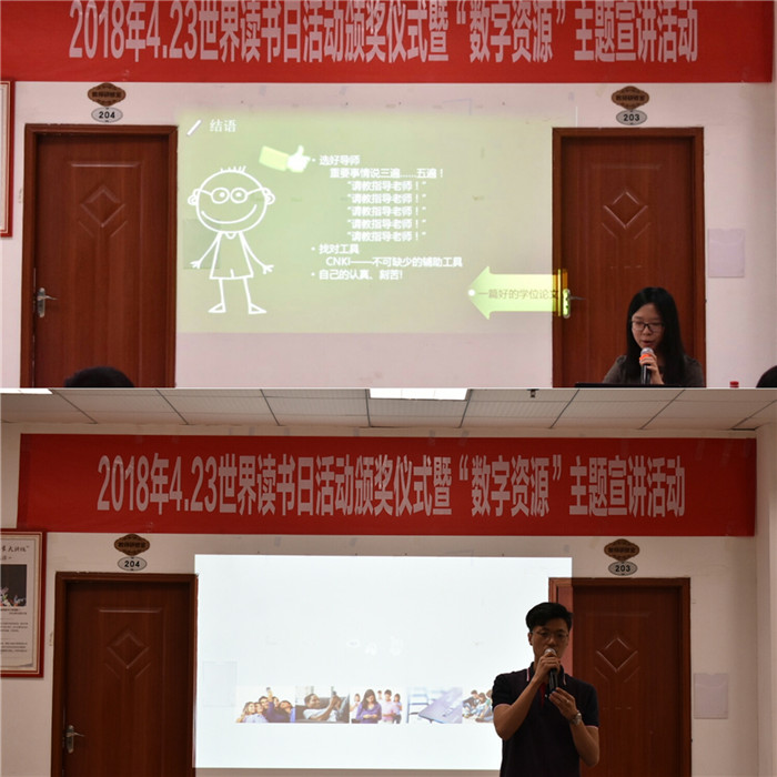 “与时代同行,巧用数字资源”之图书馆“世界读书日活动颁奖仪式”暨“数字资源”主题宣讲活动