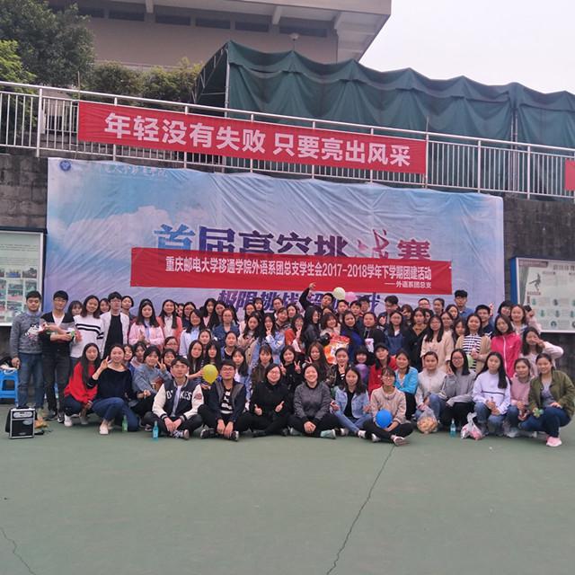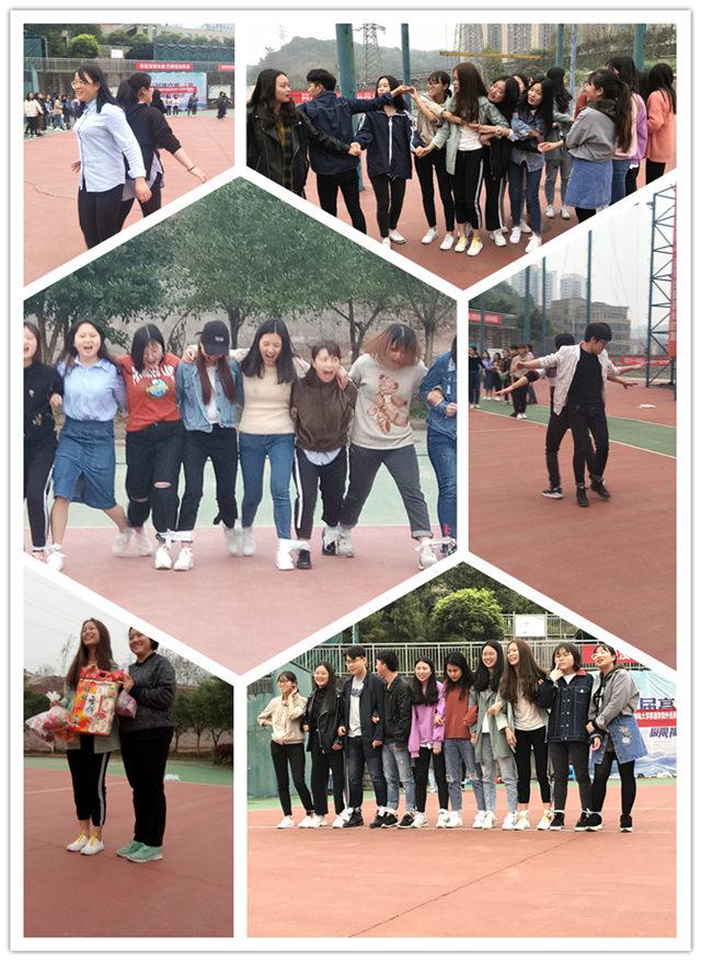 下午15:30,工作部署大会结束。外语系全体干部干事于校门口集合,集体步行至素质拓展中心,开展团队建设活动。所有人员均分为四支队伍,四名主席团成员分别为每队的队长,三位老师为裁判员,全员参与其中,大家庭的氛围其乐融融。团建的首要环节就是团队文化建设,各队队员群策群力,在只有五分钟的准备时间内将队名、口号和队歌确定,凝聚了团队,鼓舞了士气。活动共设置了三个环节,分别是“解手链”、“背靠背运气球”、“十人九足”。在第一轮手牵手解手链时,第四组率先完成,一组紧随其后,三组也不输士气。由于二组同学没有找对方法,一直无法解开,最后在其他三组同学的帮助以及老师和工作人员的鼓励下完成任务,在解开的那一刻,所有人都拥抱在了一起。而后的十人九足更是精彩,每个同学都同心协力,必须高度配合才能完成,老师们也忍不住给各队出主意、找技巧。每一环节结束后,都会让各队代表进行分享,其中取得三轮都是第一名的第四组队员张丽媛分享到:“团队的胜利不光要有一个好的领导者,更要有给力的队员”,还有排名第四的第二组的队员分享说:“有困难很正常,但是只要大家齐心,总会取得成功!”