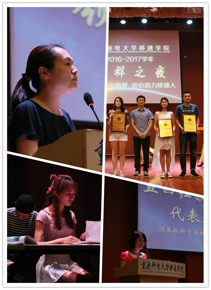 随后,院长助理周伟老师也上台为优秀院系学生会及五四红旗团总支颁奖。五四红旗团总支代表谢银平老师则谈到,我们依托着完满教育这个平台,要实现纳新创新,在实践中出成果,使榜样力量在沉淀中弘发。我知道,团学的精彩属于全体参与的移通学子。这是完满教育完善和发展的力量,使得全校的同学自发的投入到这样一场教育革命中,围绕着完满教育展开研究工作。