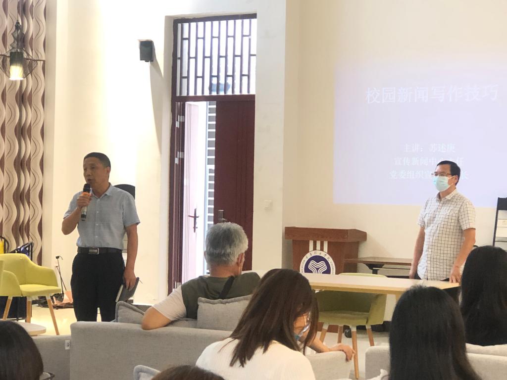6月1日下午,校党委委员、党委组织宣传部部长、校宣传新闻中心主任苏述庚受邀在荷悦109活动室外国语学院师生开展了题为“校园新闻与写作技巧”的专题讲座。讲座由外国语学院吴世银院长主持。