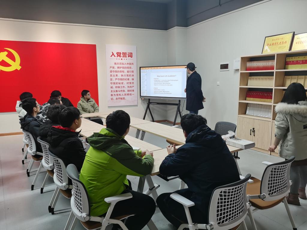 12月15日,中德应用技术学院在南湖书院举办第14期德语角活动,外教Elias为同学们带来了关于德国教育制度的一手信息,让学生进零距离接触德国教育制度和政策,来自机械双语教学教研室的杨洪老师和欧标德语教研室的李梦婷老师参与本次活动的组织和主持。