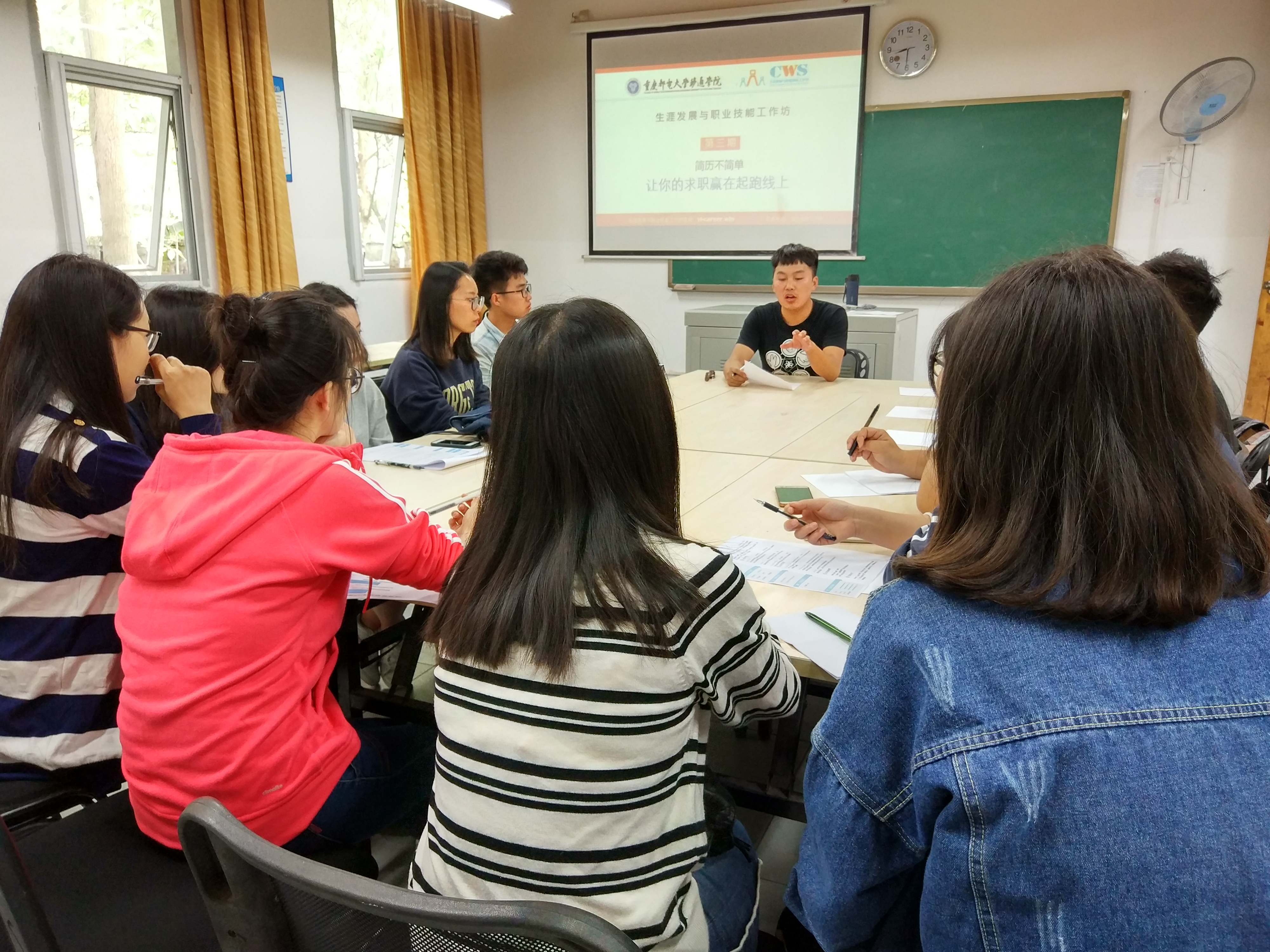 借此契机,生涯发展与职业技能工作坊于5月3日下午4点,在菩提教室五成功举办“简历制作”培训。本次培训的方式采用座谈式交流,在指导老师的引导下,参训学员相互交换简历,这样能够让参训学员相互监督和学习,达到最佳培训效果。