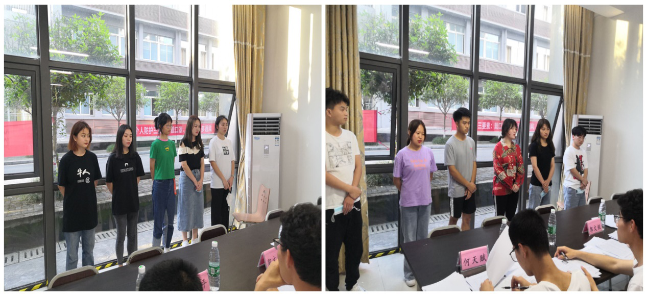 前期笔试通过问卷星于2020年6月2日中午12:00以线上的方式进行,考题类型分为:单选题20道、判断题5道、名词解释2道、简答题3道、论述题1道。笔试内容涉及国家及省市创新创业相关政策知识、重庆邮电大学移通学院创新创业工作相关知识(创业先锋班、创新创业活动、创新创业比赛等)。通过笔试,最终确定进入面试人数为52人。