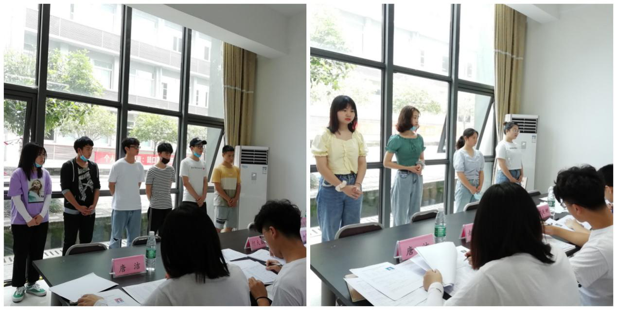 面试过程中,面试成员依次进行一分钟自我介绍和回答面试嘉宾的提问。在一分钟自我介绍环节,各成员分别介绍自身创业经历和所参加的创业比赛,用自身最大的优势以争取最大晋级可能性。