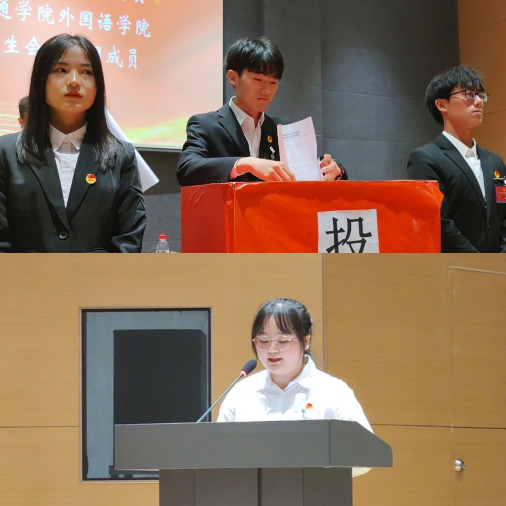 简短的休息后,第一次全体正式会议于15:40进行。回首往日,期许未来,首先,外国语学院团总支书记吕戈老师作《共青团重庆移通学院外国语学院总支部委员会工作报告》,随后,进行共青团重庆移通学院外国语学院总支部第一届委员会委员和重庆移通学院外国语学院第三届学生委员会委员选举,在有序的组织下,顺利完成投票选举。青衿之志,履践致远,在大会第三项议程中,外国语学院第二届学生委员会委员代表黄钊渝作《重庆移通学院外国语学院第二届学生委员会工作报告》。在大会公平、公正的选举下,总计票人宣读吕戈等5名同志新当选为共青团重庆移通学院外国语学院总支部第一届委员会委员,李青青等3名同学为重庆移通学院外国语学院第三届学生委员会委员。