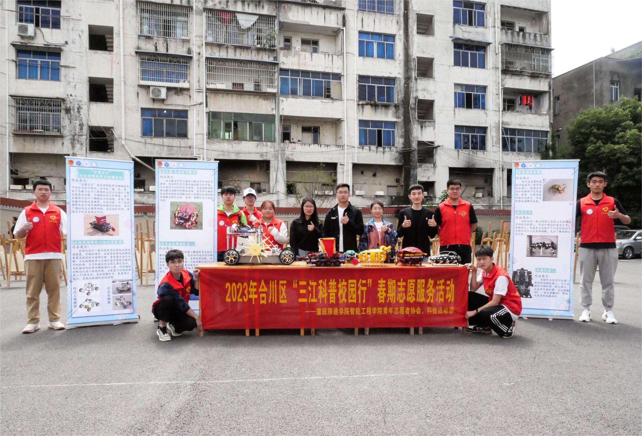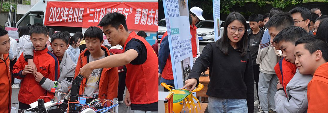2023年4月26日,重庆移通学院智能工程学院青年志愿者协会、科技活动部协同重庆市合川区科学技术协会于隆兴中学开展了2023年合川区“三江科普校园行”春期志愿服务活动。此次活动旨在利用科普资源普及科学知识,激发青少年热爱科学、乐于创造的热情,促进青少年尤其是农村偏远地区的中小学生科学素质和创新能力提升,助力乡村振兴。