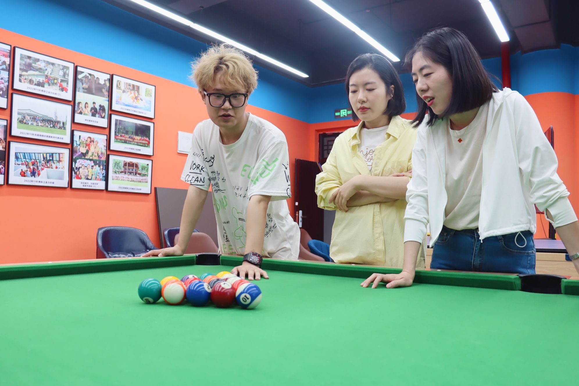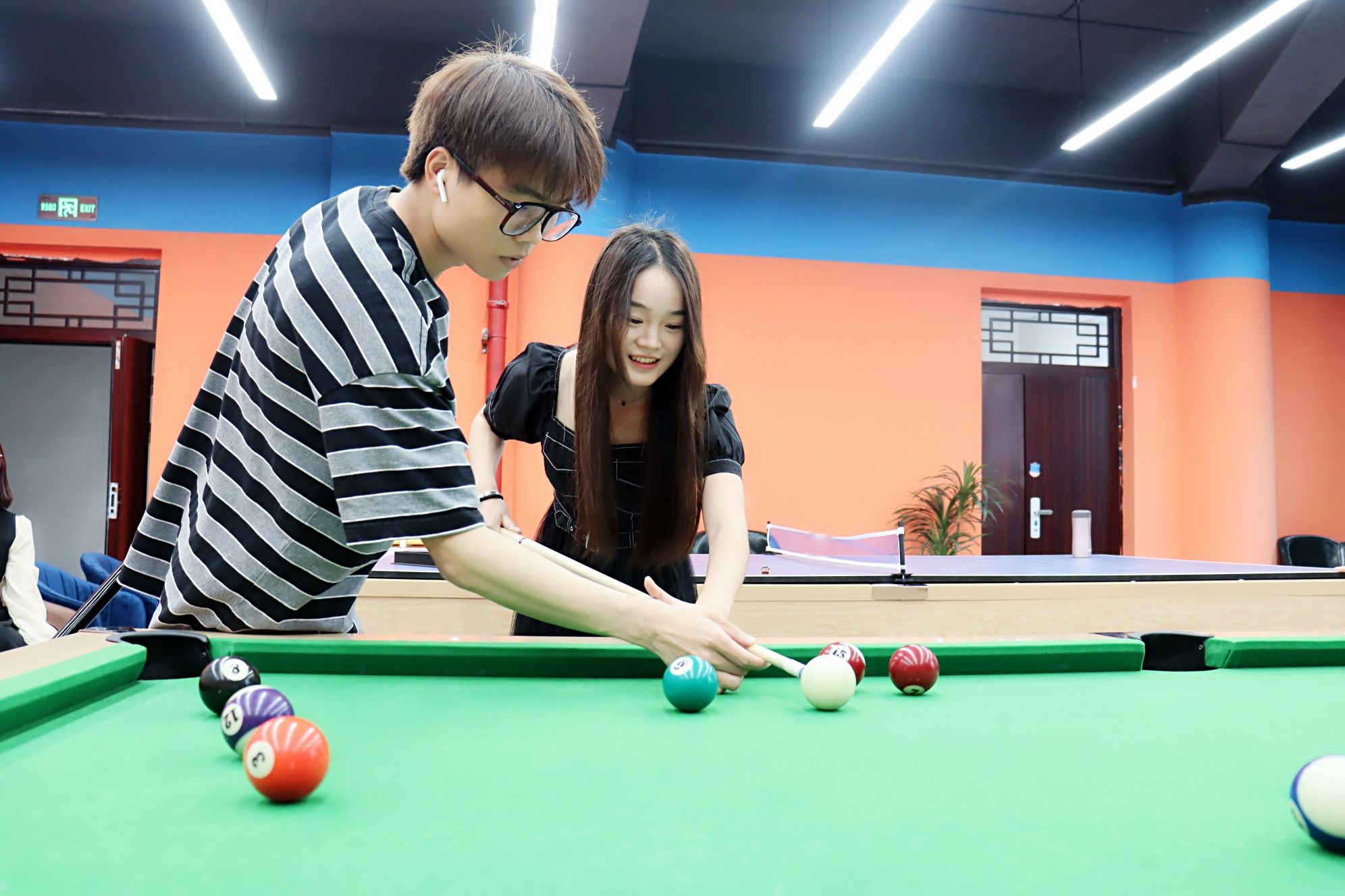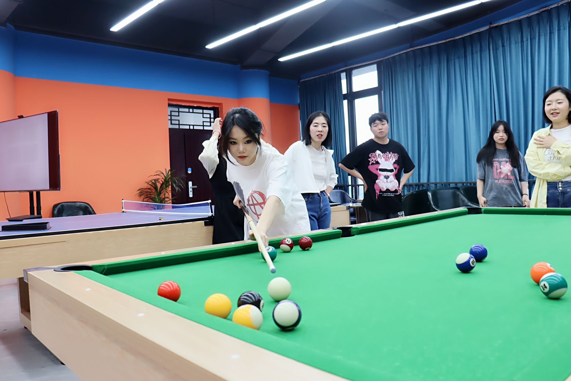 4月青春活力,共赴一场青春约定。为倡导健康向上的校园文化氛围,提高异科班级学生身体素质,丰富大学生活,倡导大家在运动中享受乐趣、增强体质、健全人格、挑战自我,促进全面发展。艺术传媒学院2022级数字媒体艺术5-7班异科导师王玉勤、数字经济与信息管理学院2021级资产评估、管理工程专业4班异科导师叶洵,于2023年4月21日下午3时联动学校工会活动室开展沉浸式国际竞技体育项目——台球体验,帮助学生释放压力,疗愈心灵。通过学习台球知识,放慢脚步,感受运动之美,弘扬竞技体育精神,践行我校完满教育育人理念。