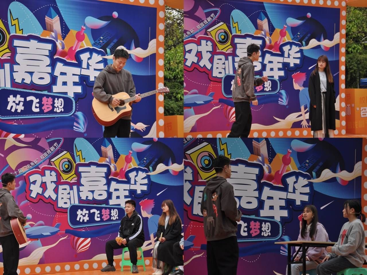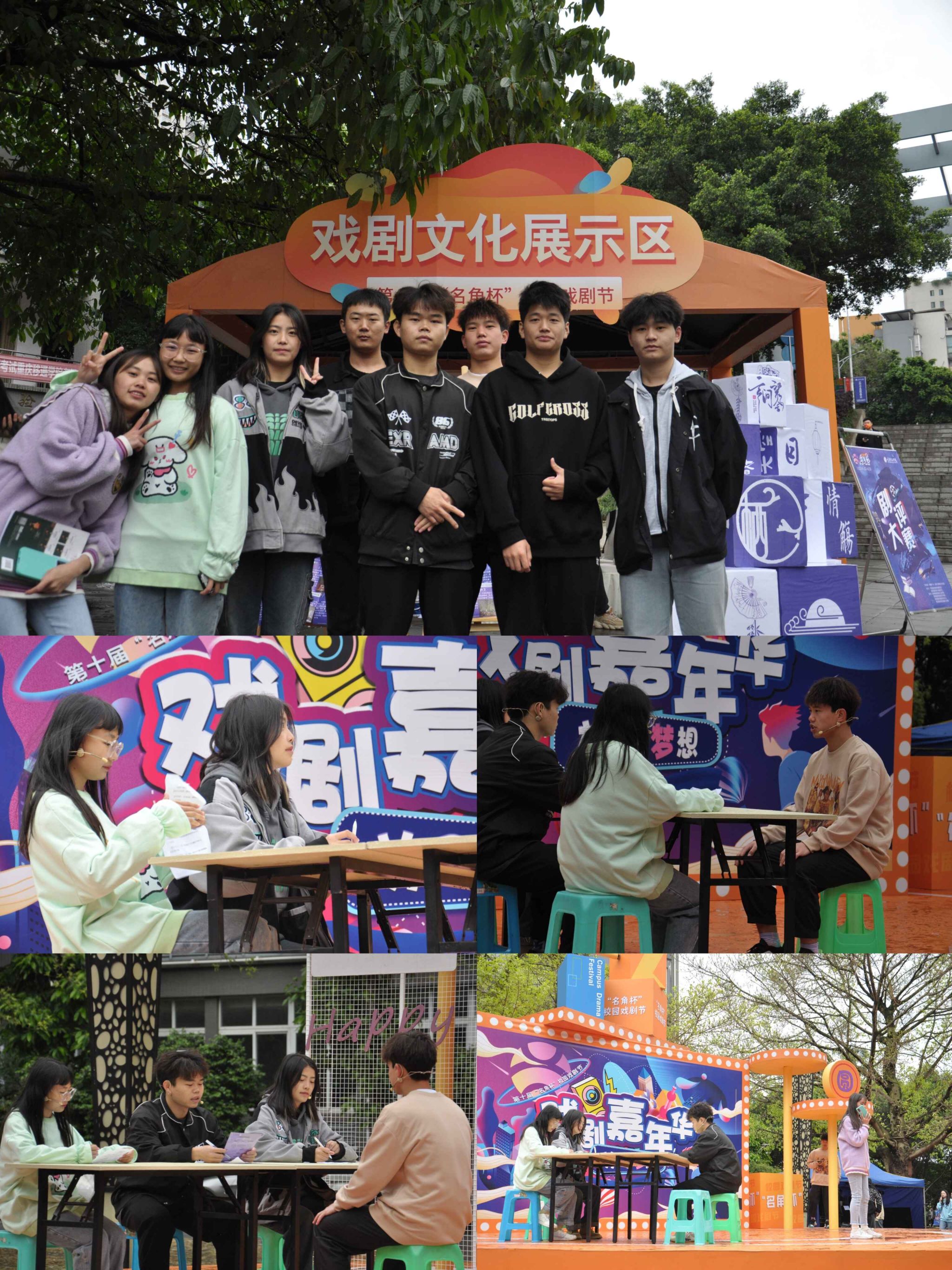 “名角杯”校园戏剧节的十年,是我们不断圆梦的十年,更是收获圆满的十年。“名角杯”校园戏剧节营造美好和谐的校园文化艺术氛围,提高各个学院基层活力,丰富学生校园文化生活。在本次第十届“名角杯”校园戏剧节嘉年华,智能工程学院提交的18个剧本中《海阔天空》、《国圆满,家圆满》、《圆遇》3部作品成功入选,于2023年4月23日在黄桷树广场同学们以精湛的演技演绎出青少年热血青春的精神状态,演绎出了戏剧表演的无限热爱。