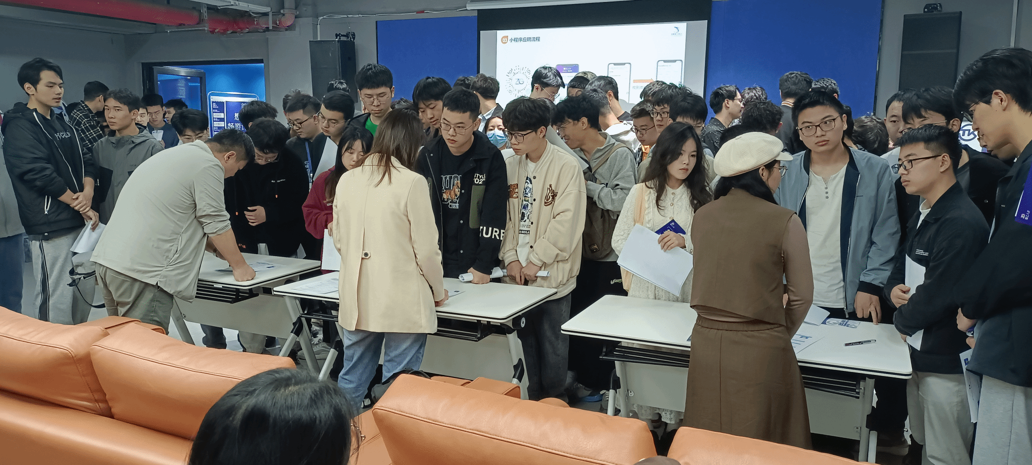 宣讲结束后,各位同学也对龙智造的各项招聘信息和文化理念有一定的了解,同学们积极踊跃的现场进行了岗位简历投递,龙智造与会大数据部、产品部、技术部、行政人事部、市场部、运营部总监分别收取并对同学们进行第一次面试。由于本次招聘会收到简历较多共有150多位同学参加,人力资源部会择优筛选简历并根据不同岗位安排第二次面试,挑选出其中品学兼优的学生加入重庆龙智造互联网科技有限公司!