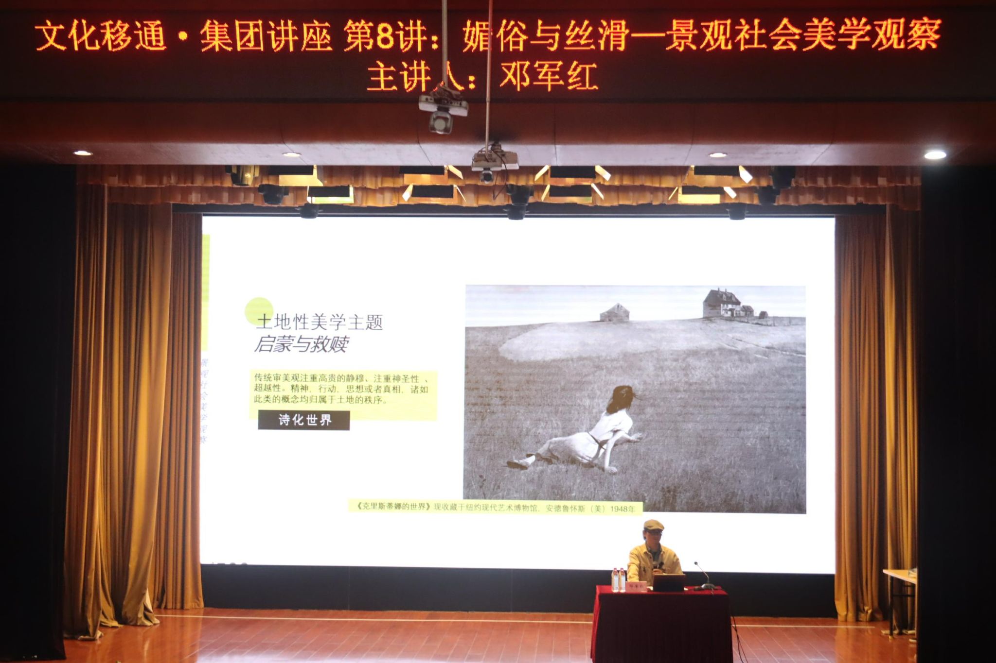 近代美的感性学,一直都以丝滑美学为起点。丝滑意味着没有否定性的,优化表面丝滑使人完全感受不到疼痛和阻力,丝滑这一特质几乎无一例外的出现在所被认为是美的物体上。4月24日晚19点,邓军红老师做客“文化移通”在下里巴人剧场为同学们带来主题为《媚俗与丝滑——景观社会美学观察》主题讲座,带领同学们一同感受美的魅力。