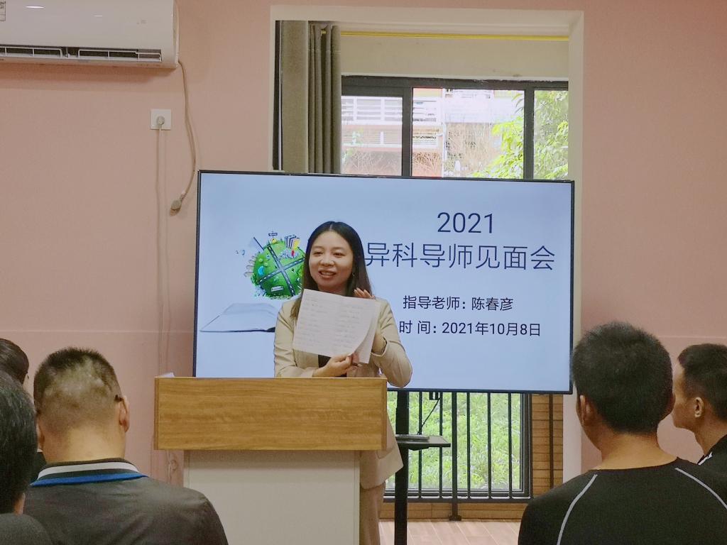 会议伊始,陈老师表示非常开心能够成为同学们的异科导师,能够在未来两年里和大家共同成长。她谈到本次见面会的目的,一是解读“全生异科导师制”工作内涵,希望工科生在培养方式上能实现学科交叉融合,形成一定的人文素养;二是师生之间相互认识,建立联系,加强沟通和交流,成为同学们的良师益友,甚至是终生伙伴;三是了解同学们的基本情况,依据同学们的需求开展个性化的异科导师主题活动。