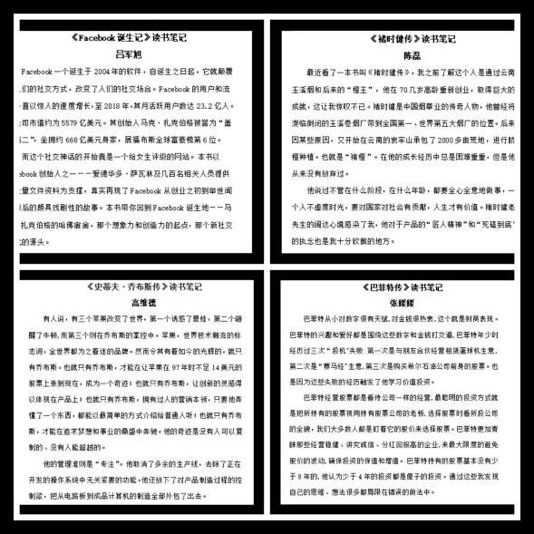 “短短千字,实在显得苍白无力。一本书的收获远不止于纸上,生活工作中的每一次投射都是一次成长。董明珠的成功事迹将会成为后被楷模,经商典范。”通信工程马龙同学在读完《董明珠传》后在读书笔记中有感而发。
