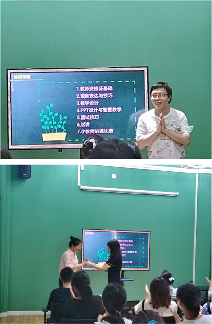 如何助力培养一名合格的小教师?导师们设计了教师资格证基础、语言表达与技巧、教学设计、PPT设计与智慧教学、面试技巧等6个专题内容。杜春梅老师从教师资格证笔试内容对学生进行辅导,助力同学们顺利考证;陈春彦老师锻炼学生语言表达能力,培养同学们上台的自信心和勇气;陈明波老师强调PPT应详略得当,有设计感;向小雪老师以“如何教会学生系蝴蝶结?”为主题,让同学们初步了解教学设计包含的内容。全方位的培训内容帮助同学们更加接近教师这份职业,并朝着自己的目标脚踏实地、努力奋斗。