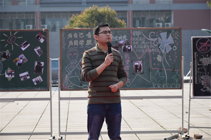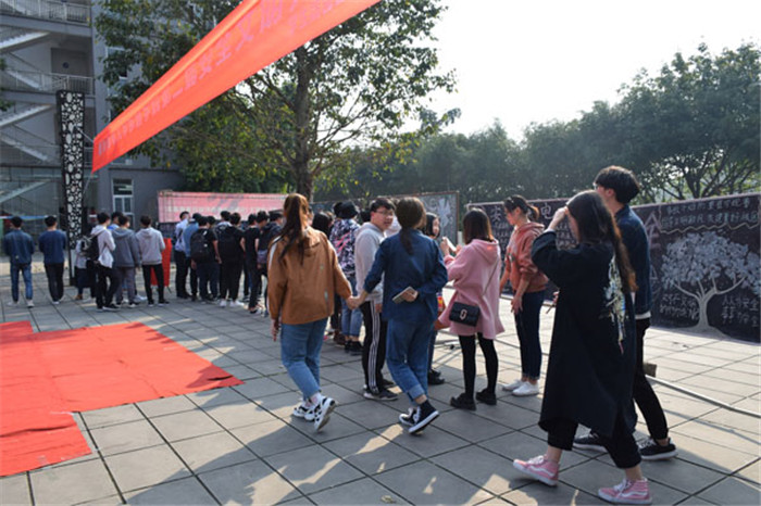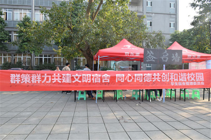仪式主要包括有三项内容,一、学生处宿舍管理中心主任唐尚静老师围绕行为习惯养成,结合“安全”和“卫生”,为同学们解读寝室安全卫生的重要性;二、由学生宿舍管理委员会主席周雪莹宣读倡议书;三、签名仪式,在横幅上签名。