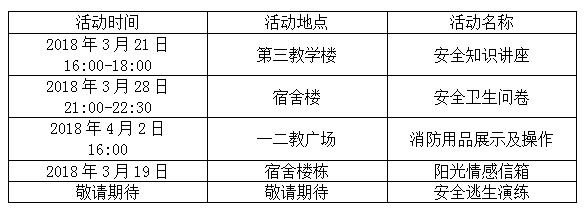 阳光不燥,春风微摇,3月14日,由重庆邮电大学移通学院学生处宿舍管理中心主办,学生宿舍管理委员会承办的第二届安全卫生开放月启动仪式在学校一二教广场正式举行。此次安全卫生开放月面向全体学生,针对当代大学生的安全卫生意识及个人素质的提高有重要的意义。
