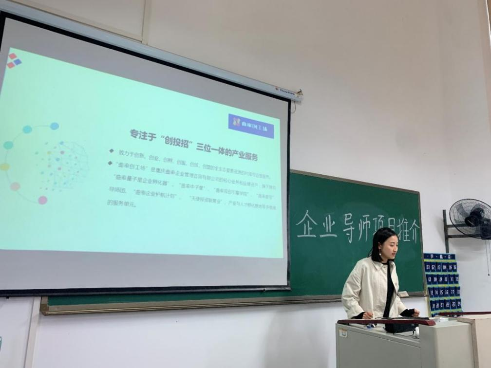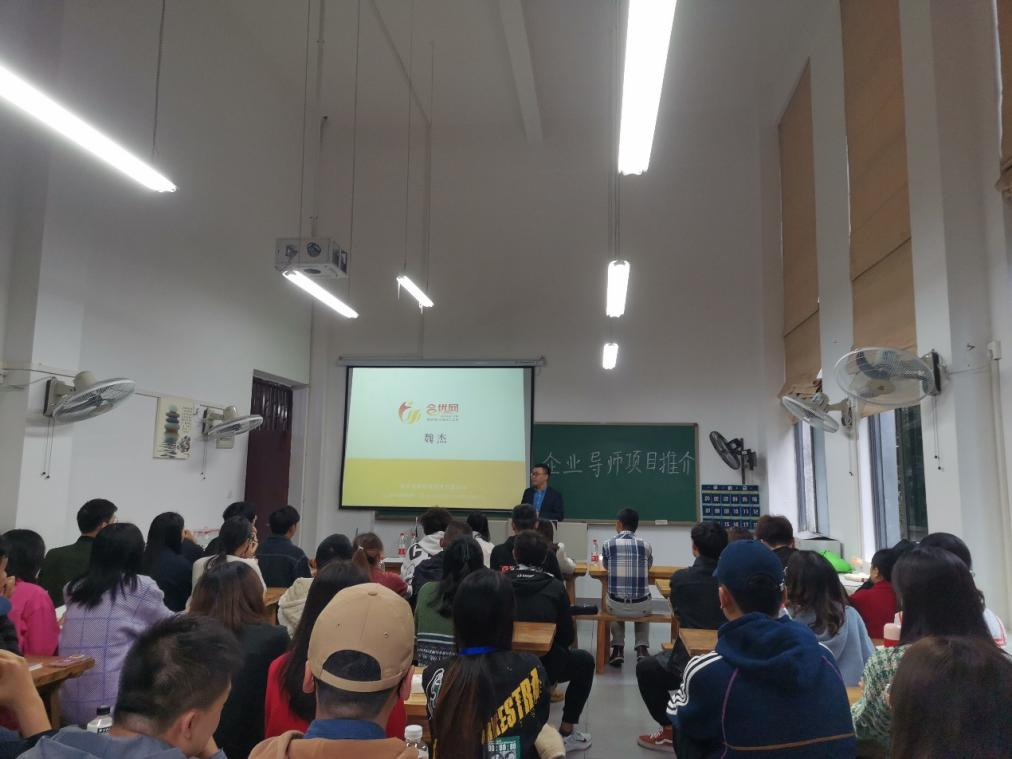 为拉近导师与学员间的距离,为学员指明奋斗方向,双创先锋班于2021年10月12日14:00在北山斋双创先锋班基地开展了企业导师项目推介会,四位企业导师和学校校长助理陈仲华莅临本次推介会。校长助理陈仲华首先对于企业导师能够在百忙之中抽出时间指导学生表示感谢,同时他也希望学员能学有所得。