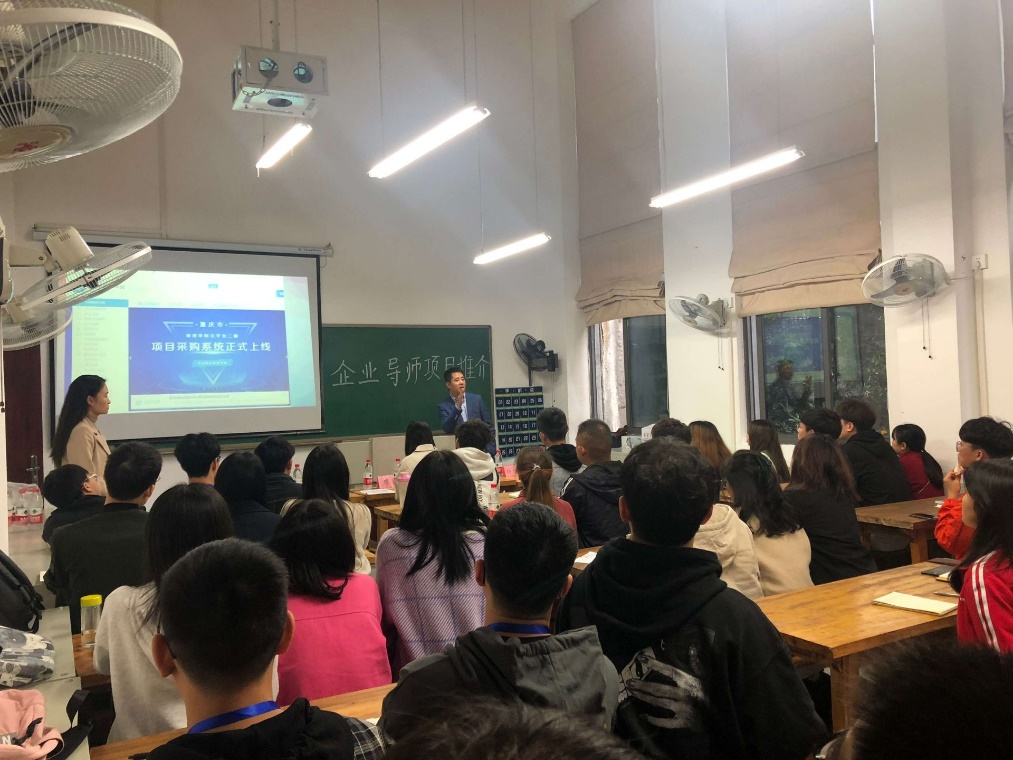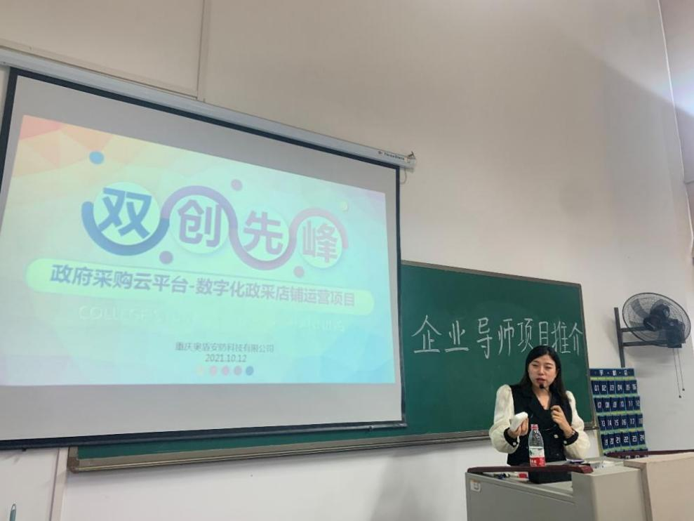 重庆奥盾安防科技有限公司总经理杜娟,也是我校2007级校友。其所带来的政府采购云平台项目,使学员们切实参与招投标,悟投资之魅力。学员需各司其职,从最基础的上架货物,到产品推广,以及招投标进行盈利。体验完整的项目流程,学员们熟悉公司的运转环节,为双创学员未来的创业之路奠定基础。她更是承诺,此次项目产生的利润将作为学校的奖学金,做到以学养工,再以工哺学。