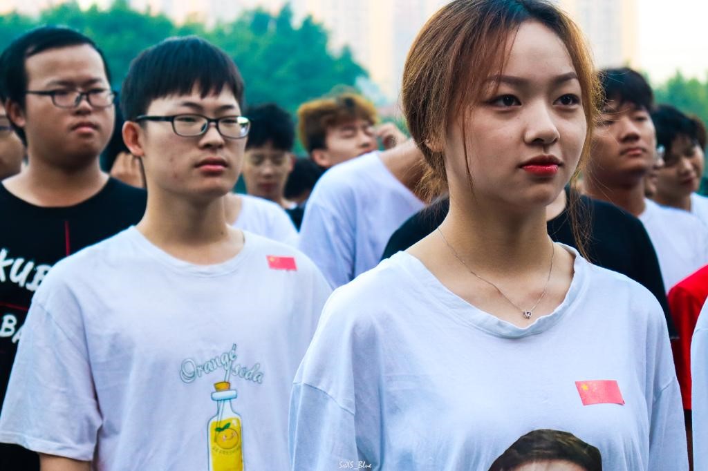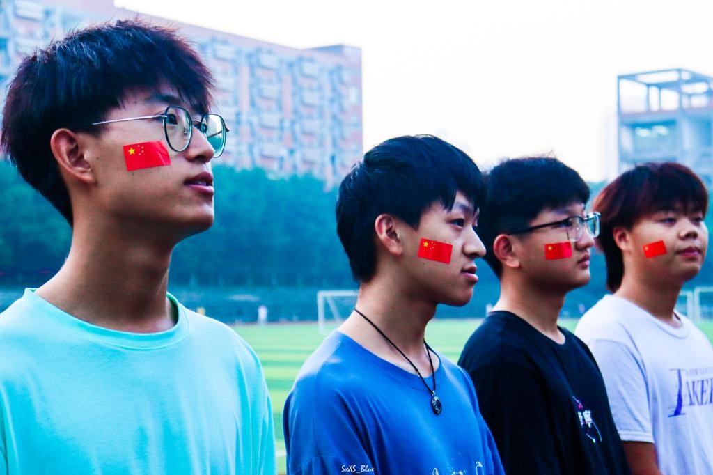 一列列整齐的队伍富有节奏地奔跑在校园的跑道上,一个个学生精神抖擞,踏着一致的步伐前行,一面面鲜艳的国旗在他们的脸庞闪闪发光,这是他们对祖国最直接最真挚的祝福。