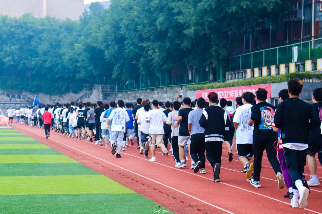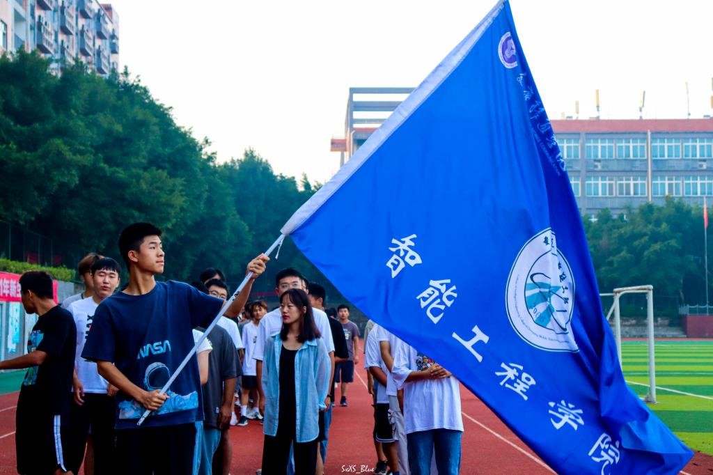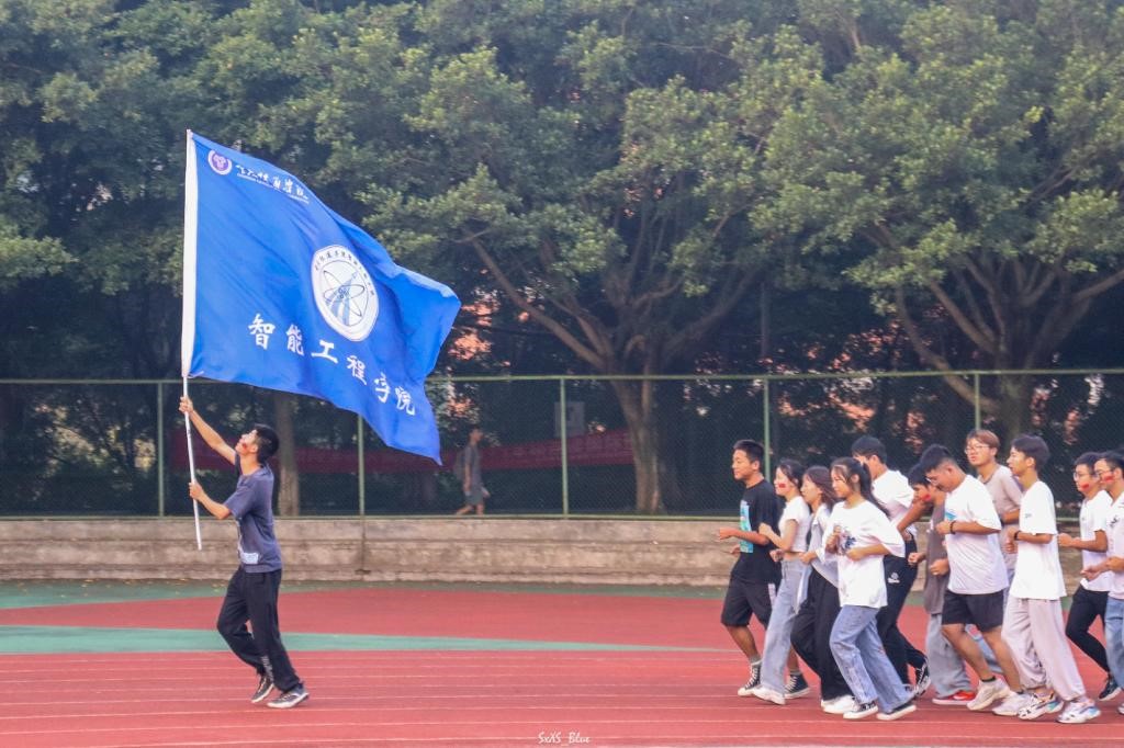 上午6:50,整齐划一的队列在田径场上格外亮眼。晨跑队列中手持智能工程学院院徽的同学带领着大家喊出活动口号。口号声铿锵有力、响彻整个操场,体现出新生们独特精气神。