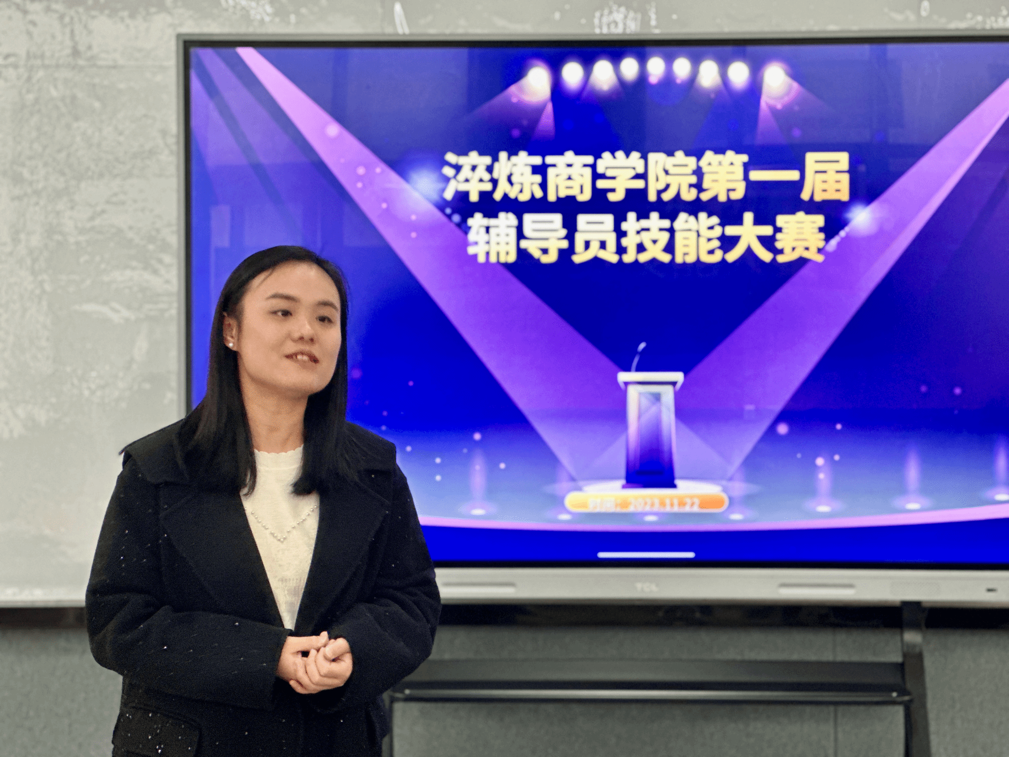 辅导员作为高校学生工作的重要力量,对于学生的成长和发展起着至关重要的作用。为深入贯彻落实教育部《普通高等学校辅导员队伍建设规定》等有关文件精神,进一步加强我院辅导员队伍建设,提升辅导员专业水平和职业能力素养,充分发挥以赛代训、以赛代练、以赛代培的作用,11月22日,在南湖书院中德创意工坊举办了淬炼商学院第一届辅导员技能大赛决赛。本次大赛邀请到智能工程学院副院长祝玮、德工工程学院副院长李伟光、淬炼商学院副院长刘薇唯、学生处学生科副科长陈思、淬炼商学院学工办主任廖进担任评委,由张琳莉老师主持。