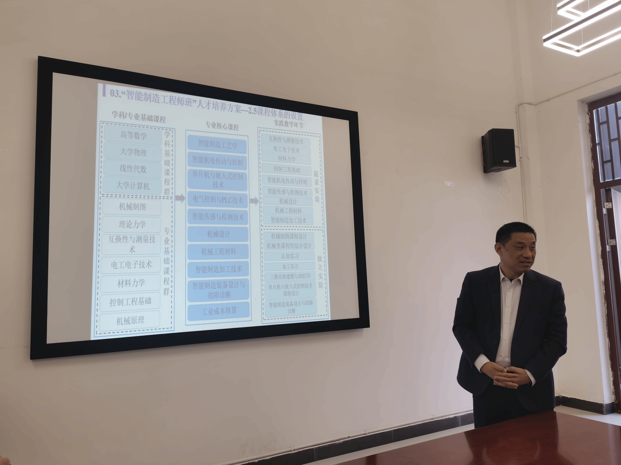 随后,田于财老师详细介绍了“智能制造工程师班”的培养方案,以及智能制造人才培养过程中存在的一些问题。张教授对我院智能制造工程师班的培养方案给予肯定,并就上述问题展开了讨论,气氛非常活跃。讨论过后,张教授及时总结了大家的想法,给出了解决问题的方案,如打造“双师型”师资队伍、建设适应智能制造人才培养的创新实验平台等等。
