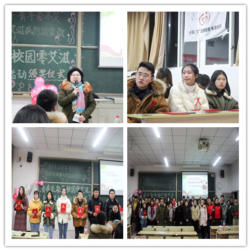 有了防艾榜样才能影响更多人参与其中,为此2018年12月27日举行了“青春正能量、校园“零”艾滋”系列活动总结暨表彰大会。重庆市合川区疾控中心艾防科科长杨恩泽,重庆邮电大学移通学院校团委志愿服务板块指导老师唐彬文老师,大数据与软件学院副院长毛敏老师,大数据与软件学院志愿服务板块指导老师王焱老师、兰宇老师,以及大数据与软件学院的辅导员们莅临本次表彰大会。