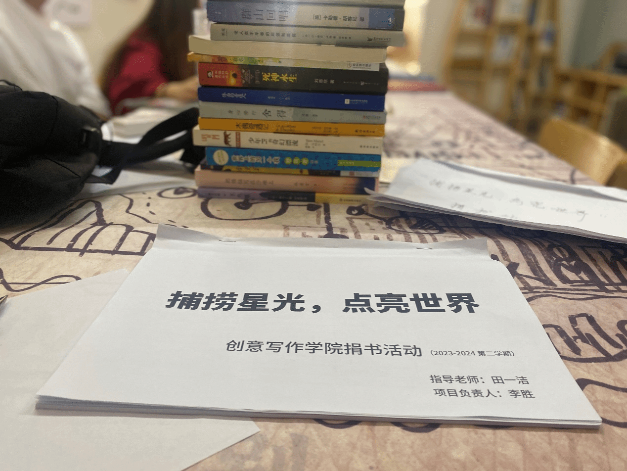 更值得一提的是由创意写作学院、校图书馆、廊桥书院共办的“捕捞星光,点亮世界”的捐书活动,也在“N维工作室“的落实下进行到了第六期,这个活动旨在让移通学子捐出课余书籍,经由图书馆入库筛选后再捐到周边中小学校,这是一项体现移通大爱的活动,读书现场堆放的就是同学们捐来的书籍。