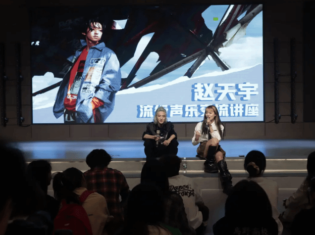 本次活动邀请到 《明日之子》第一季季军赵天宇,和王菲老师与段涵荠老师全生异科的同学们展开热烈的探讨交流。同学们向赵老师积极提问,赵老师对于能见到这么多对音乐感兴趣的小伙伴表示开心。