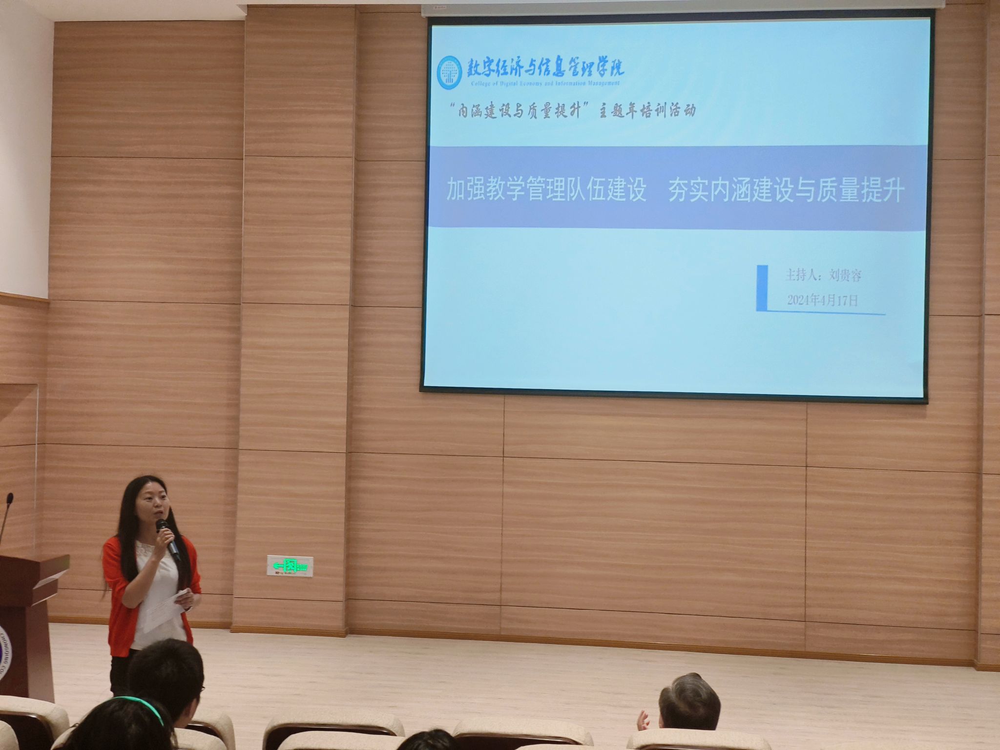 活动伊始,数字经济与信息管理学院副院长刘贵容教授对高飞处长的到来表示热烈欢迎,并表示高飞处长无论是个人教学和科研,还是带领团队做教学管理工作都颇有心得,相信本次报告将会给我院带来新的发展思路。