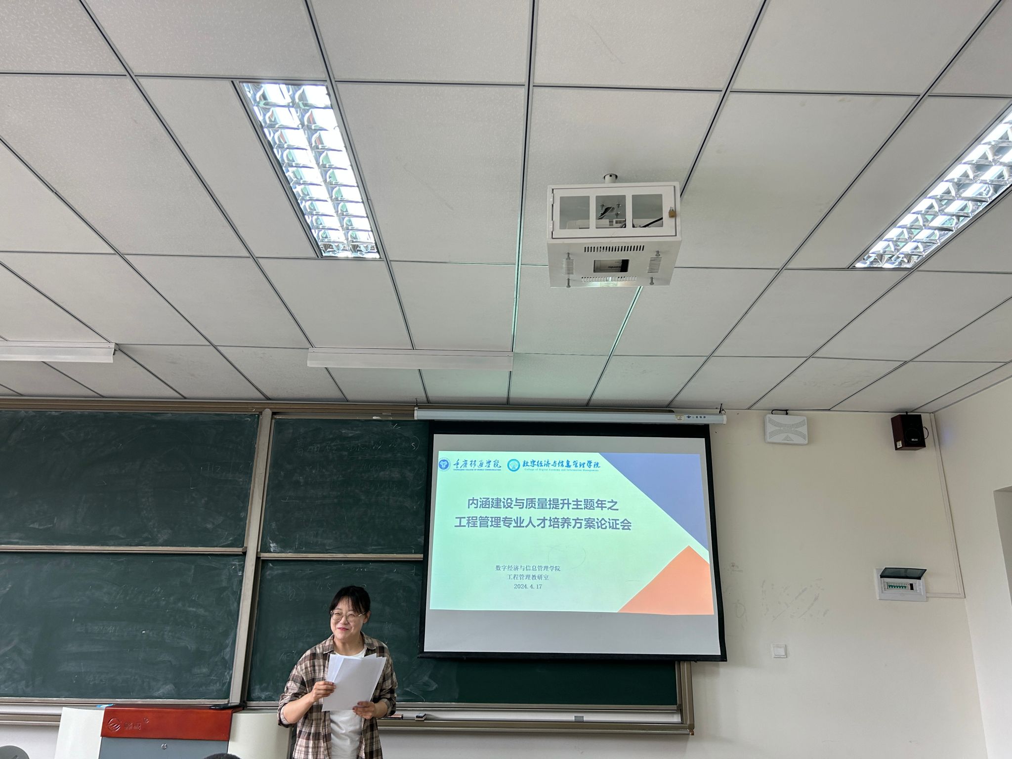 为进一步落实学校“内涵建设与质量提升”主题年活动方案,提升工程管理专业人才培养质量,强化内涵建设,推动应用型人才培养改革,数字经济与信息管理学院于4月17日下午14:00在双栀405举行召开了工程管理专业人才培养方案论证会,此次会议特别邀请了校外专家重庆市乾和建筑工程有限公司高级工程师陈驰参加,主要探讨新形势下工程管理专业建设和人才培养方案改革,专业建设人刘艳利副教授主持,工程管理教研室全体教师参加。