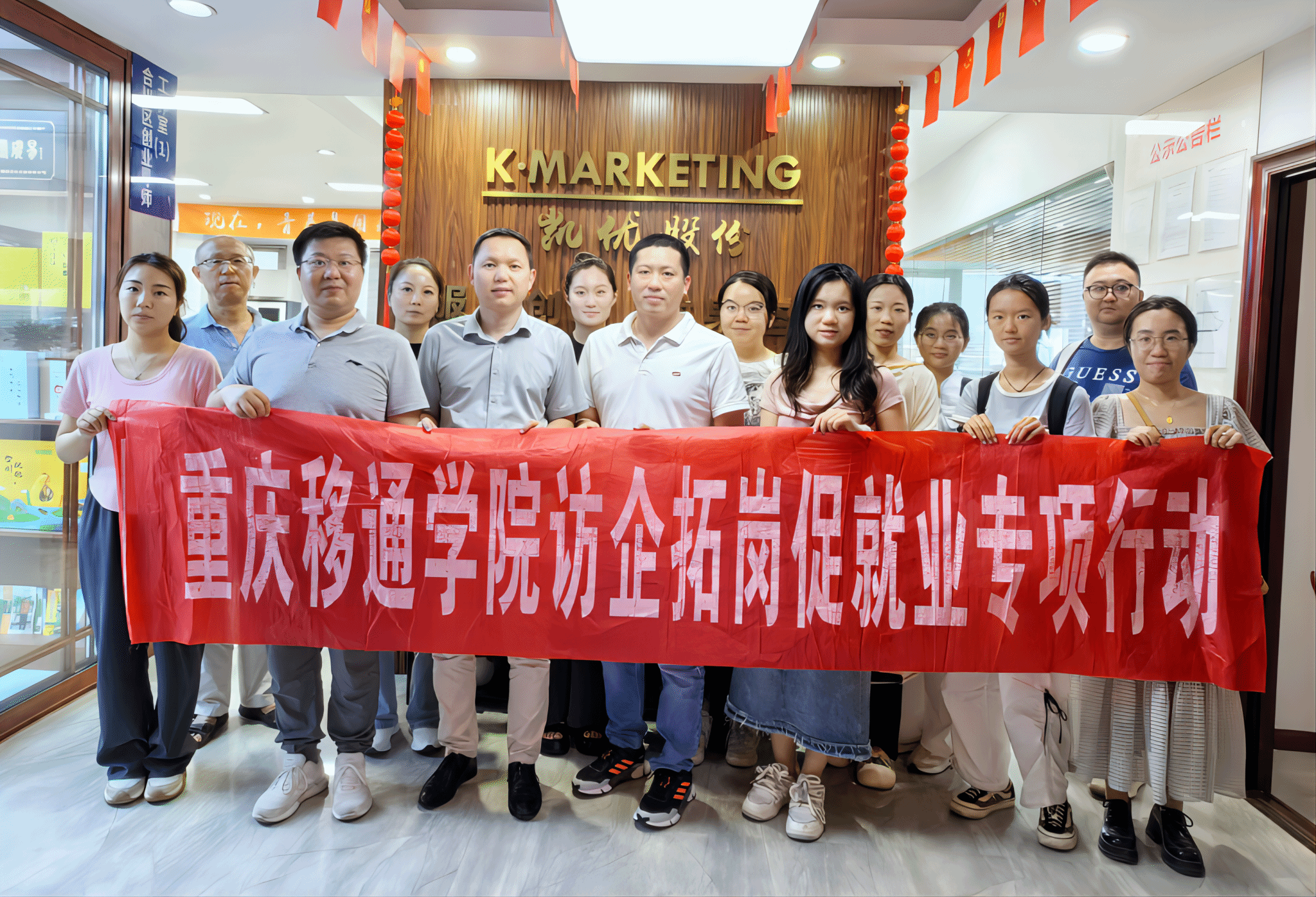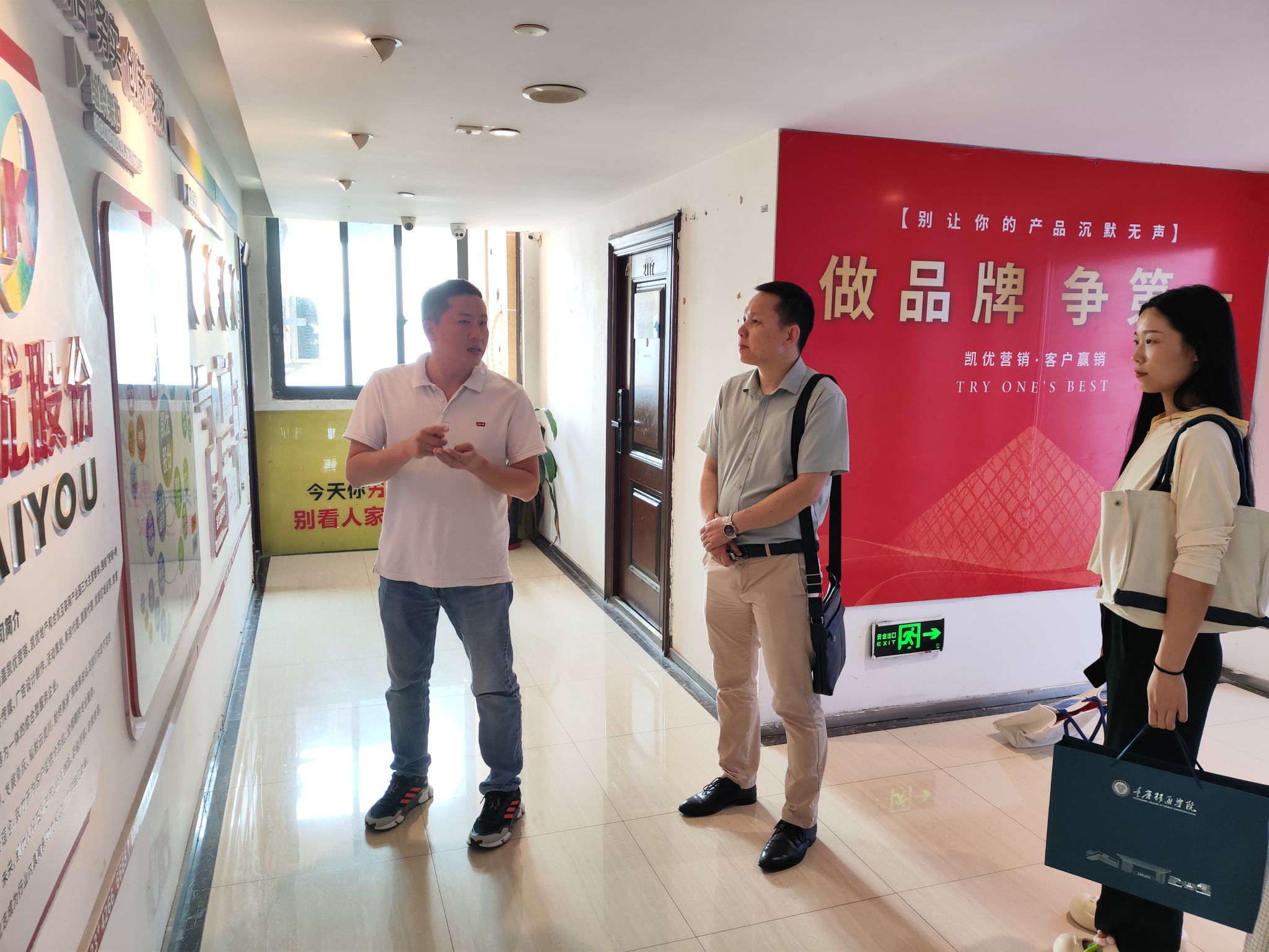 为进一步贯彻落实党中央、国务院关于促进高校毕业生就业工作的决策部署,根据《重庆移通学院关于开展书记校长访企拓岗促就业专项行动方案的通知》(移通【2024】98号)文件要求,了解企业对人才的需求,商讨人才培养模式, 6月13日下午,重庆移通学院淬炼商学院基础教研室主任李邓金老师携基础教研室全体教师前往重庆凯优文化传媒有限公司进行走访,同时与在该公司工作的校友高丽云进行沟通和交流。此次走访活动旨在了解企业发展状况和业务模式,与企业深度探究企业对人才的需求,商讨人才培养模式,通过改进教学方法和思路,提高学生适应企业工作的能力。
