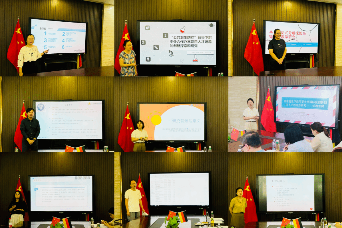 2024年9月18日,德国工程学院组织召开了2024年校级一般教改项目结题答辩会。本次答辩在德工会议室举行,教务处处长高飞教授、智能工程学院院长党晓圆教授、外国语学院朱惠东副教授、德国工程学院曹雪姣副教授和谢熙副教授组成专家评审组,对德国工程学院和数理教学部的校级一般教改项目进行了专业细致的评审,德国工程学院副院长谭劲秋出席了本次会议。