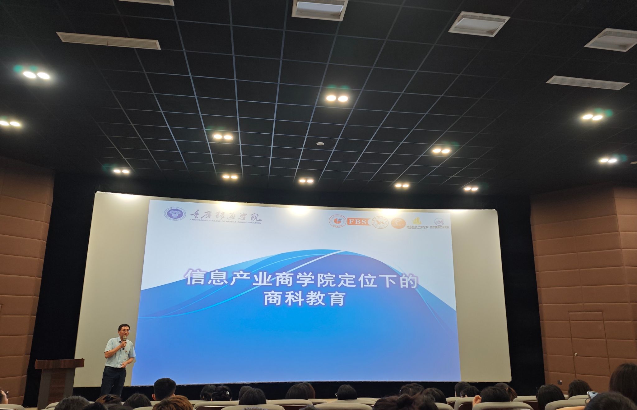 最后,校长助理兼淬炼商学院、国际商学院院长张平为全体教师解读了学校近期下发的《董事长教育理念资料》以及《徐枞巍校长在泰山科技学院的讲话》中的重要内容,并结合文件的重要意旨就信息产业商学院定位下的商科教育进行了深入解读。张助理首先向参会老师传达了董事长的教育理念:“重庆移通学院的竞争战略是为学生创造价值,通过四年的培养,将高考比赛中的普通选手跟其他同类大学的高中同班同学相比经过学校四位一体双院制+特色模块的培养,让学生的创造力、影响力、领导力飙升”。接着,张校助深度剖析了重庆移通学院“新商科”建设逻辑架构,学院打造的新商科是:商科(课程或理论工具)+信息产业+完满通识艺术+实战项目+大师课(Learning by doing),关键成果在人才产出和“教师+软硬件”的新商科专业/课程(项目)、教师,最终形成集团和学校特色的“新商科”品牌和部门特色品牌。最后,张校助为全体老师赠言:“教书育人是本分,共同奋斗是缘分,相互成就是福分!”