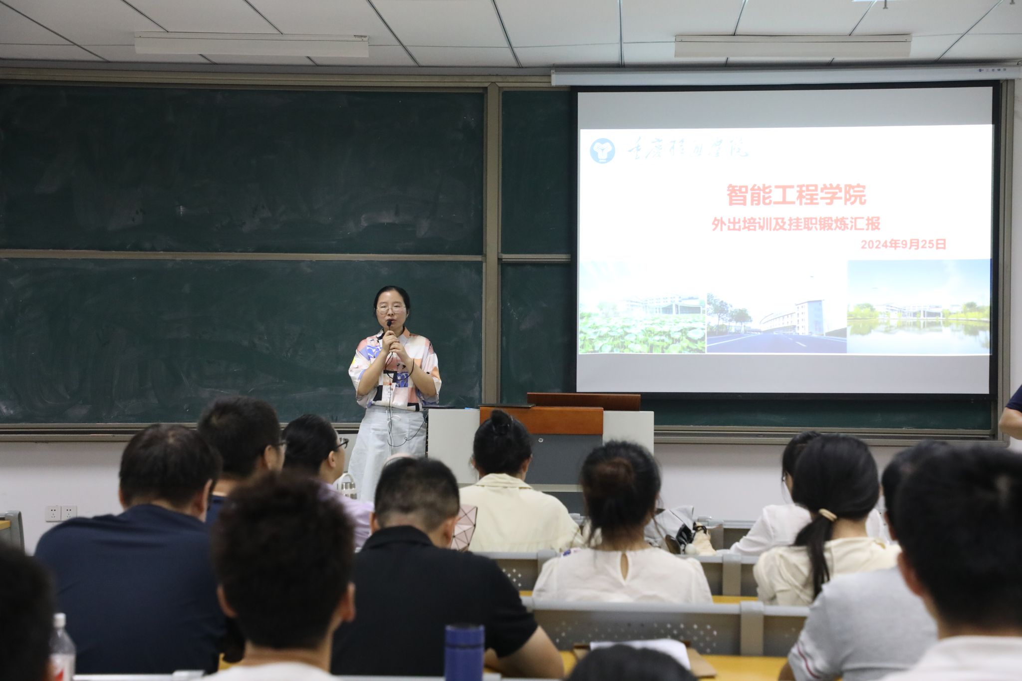 为进一步加强学校“双师双能型”教师队伍建设,提升专业教师技能水平和教学质量,提高教育教学水平,智能工程学院于9月25日下午,在9209教室开展暑期教师外出培训汇报与交流活动。活动由智能工程学院教学副院长李洁主持,智能工程学院全体教师参与本次活动。